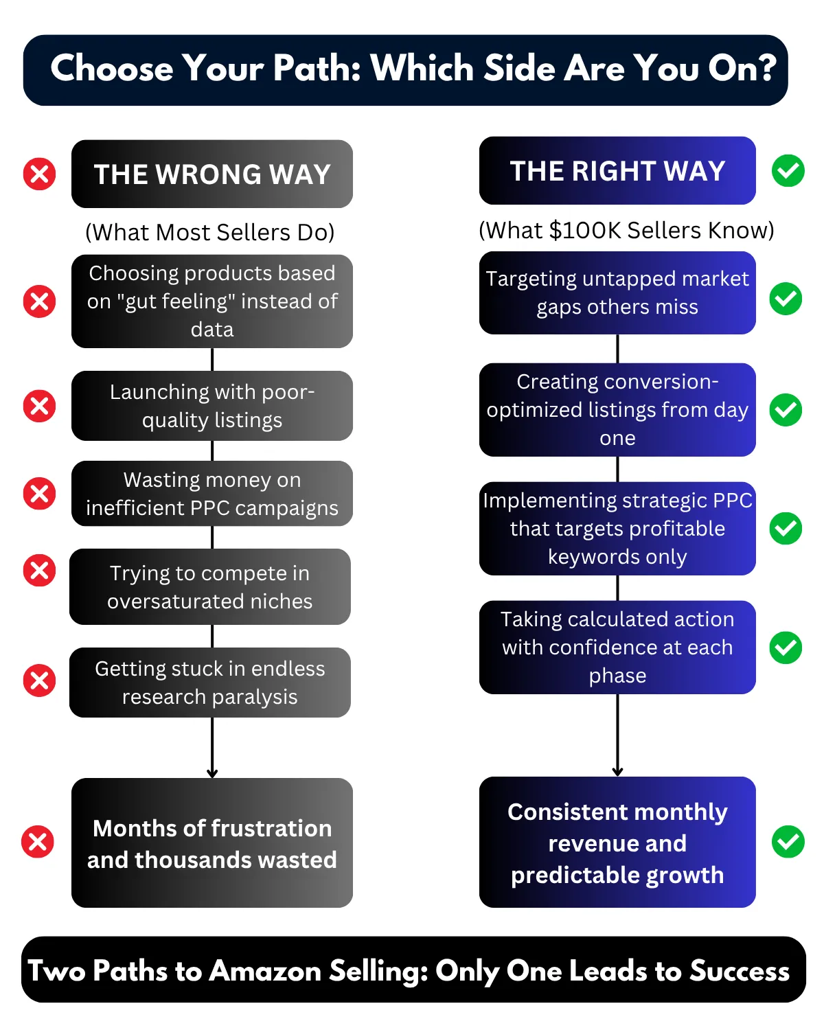 Meanwhile, a small group of sellers are quietly building $100K+ businesses using a methodical approach that works consistently in today's marketplace.